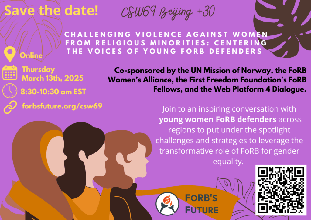 Join young FoRB defenders as they tackle this urgent issue, exploring how cultural norms, systemic barriers, and intersecting identities shape these challenges—and how Freedom of Religion or Belief (FoRB) can drive gender equality and human rights.